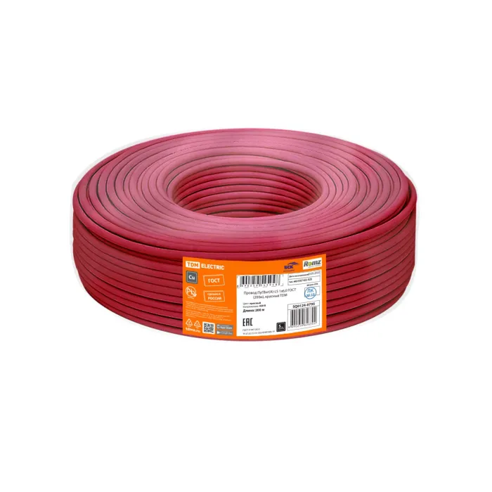 Провод ПуГВнг(А)-LS 1х6,0 ГОСТ (200м), красный TDM