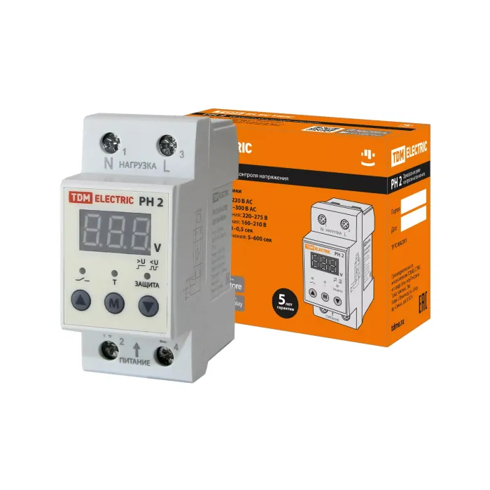 Назначение: Для контроля уровня напряжения в однофазных сетях переменного тока 220 В 50 Гц и отключения нагрузки в случае падения скачков напряжения электросети.Применение: Защита однофазного электрооборудования от повышенного и пониженного напряжения сети.Преимущества: Реле РН-1, РН 2 – европейская серия в одномодульном исполнении, изготовленная на современной элементной базе,Реле имеют высокую точность измерения напряжения с погрешностью менее 1%.Реле РН 2 имеют дисплеи, отображающие текущее напряжение сети.Наличие кварцевого стабилизатора обеспечивает высокую стабильность работы во всем диапазоне рабочих температур.Исполнение в одном модуле (РН 1) позволяет экономить место в щитке.РН 2 - прямое подключение нагрузки до 63А.Материалы: Микросхемы реле выполнены на современной элементной базе.Пластик, не поддерживающий горение.
