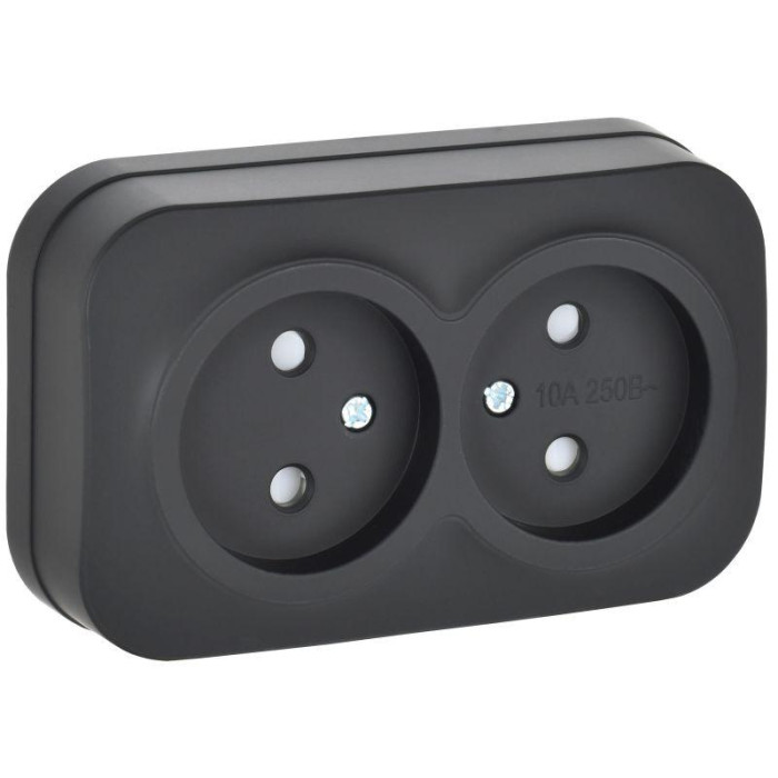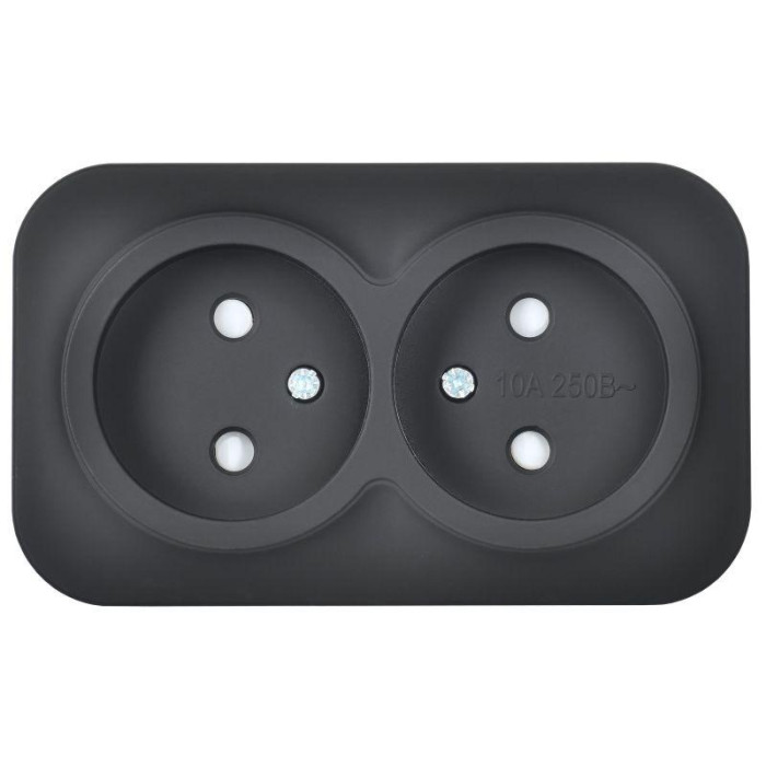 Розетка 2-м ОП GLORY РСш22-2-ХЧм 10А без заземл. защ. шторки черн. матов. IEK ERH23-K02M-10