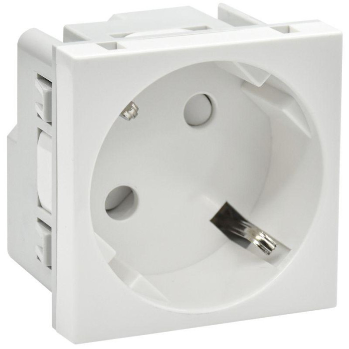 Розетка под углом 45 градусов предназначена для подключения электрических потребителей переменного тока напряжением до 250 В частотой 50 Гц и номинальным током 16 А. В розетке предусмотрены защитные шторки и заземляющие контакты. Размеры, ВхШхГ,мм: 45х45х40,8. Цвет - белый.
