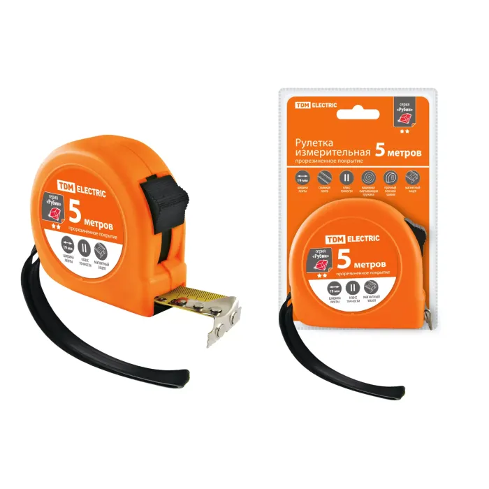 Преимущества: Прорезь в крючке для черчения окружностей (в серии «Гранит»). Дополнительное усиление заклепок крючка. Надежная сматывающая пружина и удобный корпус. Утолщенное пластиковое покрытие ленты, защищающее разметку. Магниты для зацепления за металлические предметы и дополнительные зубцы в крючке (в серии «Рубин»). Удобство и долговечность-прорезиненная вставка способствует хорошему захвату инструмента и надежно защищает корпус рулетки от повреждений при падении Удобный подвес для размещения в торговом зале, который содержит всю необходимую информацию о преимуществах продукта и типе, а также штрих-код Функция автостоп – автоматическая фиксация выдвинутого измерительного полотна (в серии "Алмаз")
