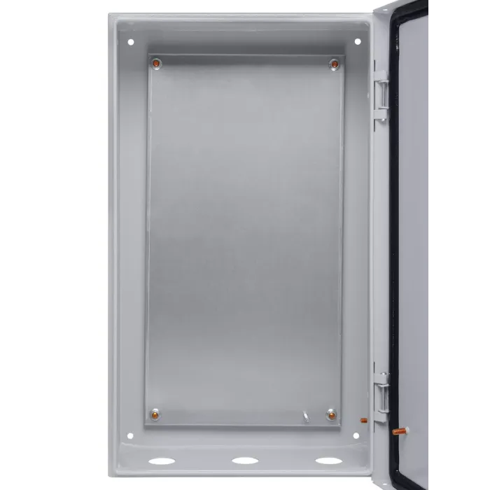 Конструкция: Элементы заземления на корпусе, дверце и монтажной панели. Оцинкованная монтажная панель толщиной 1,2 мм. Усиленные петли (для IP66). Полностью проваренные швы (для IP66).