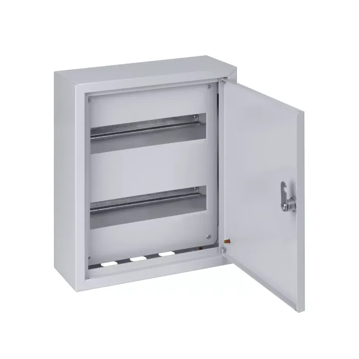 Конструкция: Перенавешиваемая дверца (для IP31). Декоративная рамка с дополнительным отгибом для щитов, встраиваемых в нишу. Усиленные петли (для IP66). Травмобезопасная технология: крепление стенки при помощи заклепок. Элемент заземления на дверце.
