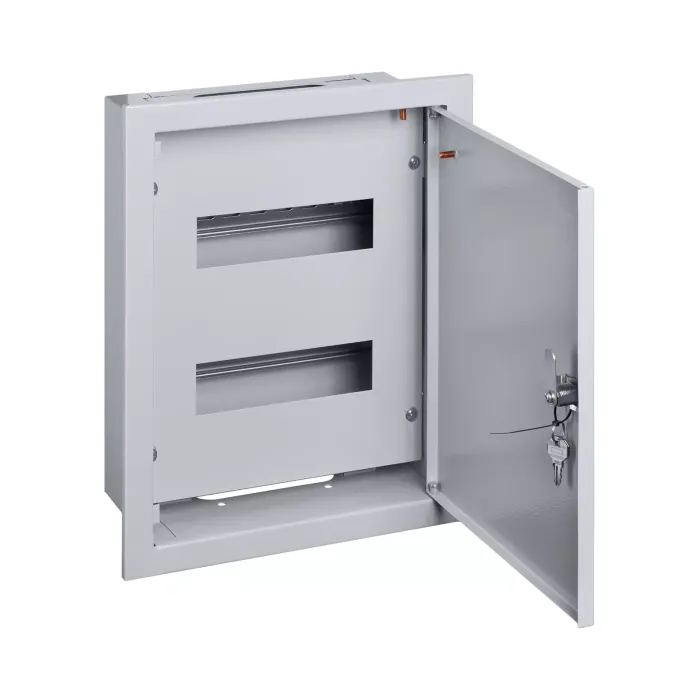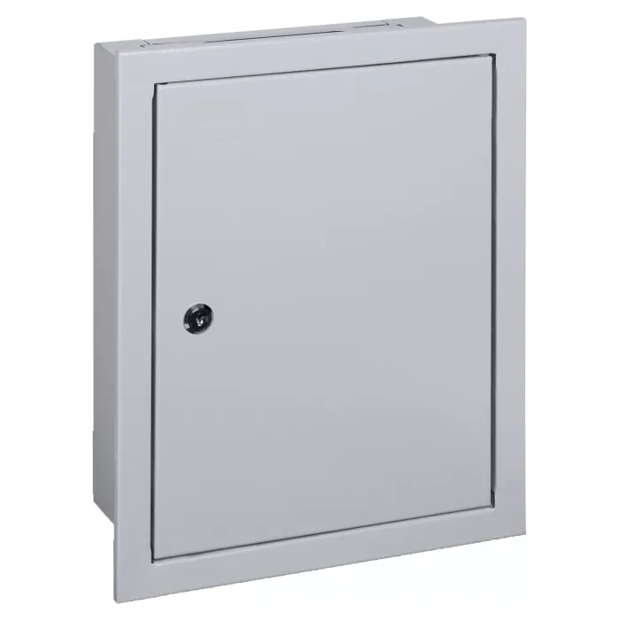 Конструкция: Травмобезопасная технология: крепление стенки при помощи заклепок. Декоративная рамка с дополнительным отгибом для щитов, встраиваемых в нишу. Усиленные петли (для IP66). Элемент заземления на дверце. Перенавешиваемая дверца (для IP31).