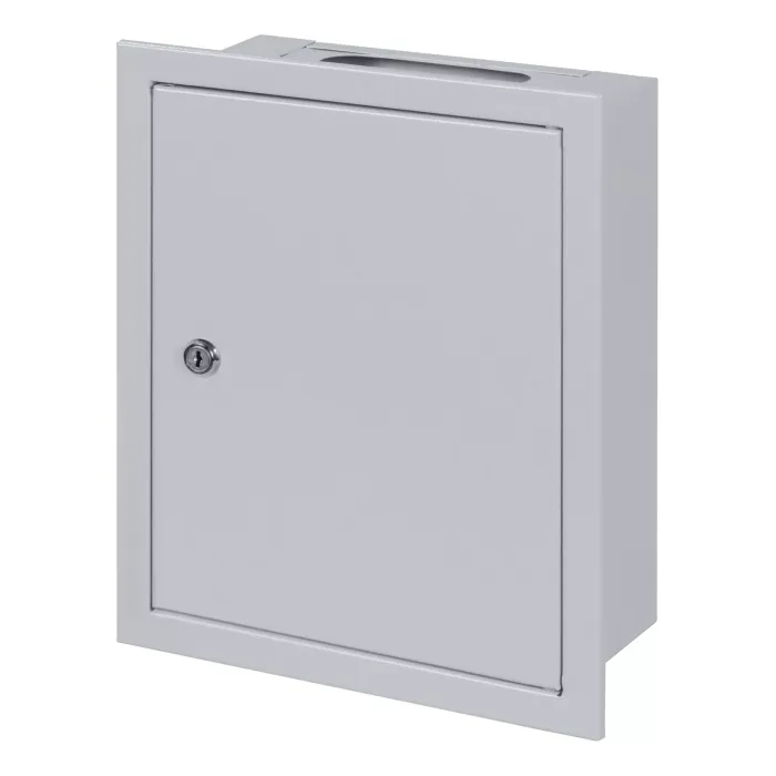 Конструкция: Элемент заземления на дверце. Травмобезопасная технология: крепление стенки при помощи заклепок. Перенавешиваемая дверца (для IP31). Усиленные петли (для IP66). Декоративная рамка с дополнительным отгибом для щитов, встраиваемых в нишу.