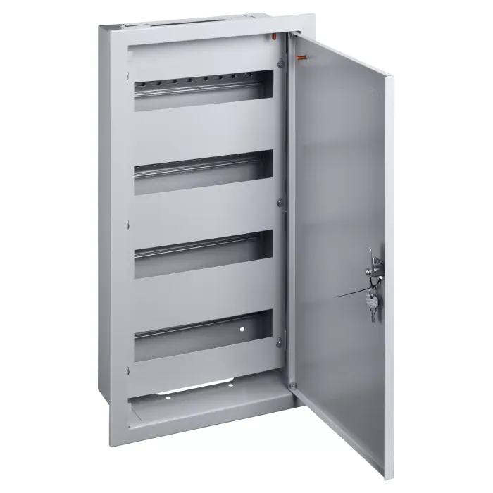 Конструкция: Перенавешиваемая дверца (для IP31). Усиленные петли (для IP66). Травмобезопасная технология: крепление стенки при помощи заклепок. Элемент заземления на дверце. Декоративная рамка с дополнительным отгибом для щитов, встраиваемых в нишу.