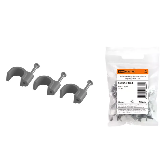 Скоба 35мм круглая пластиковая (серая) (50шт) TDM