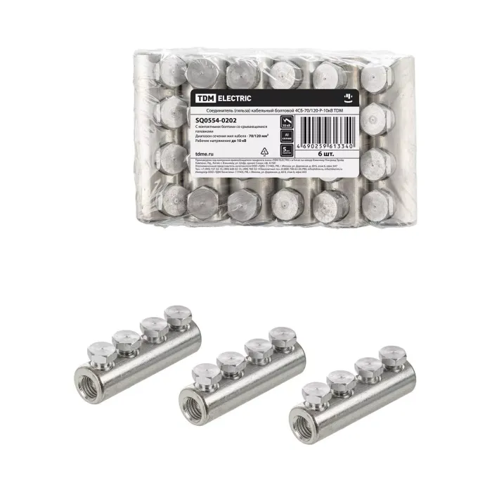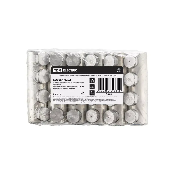 Преимущества: Позволяют соединять жилы кабелей любого типа: - Алюминиевые и медные; - Круглые и секторные; - С многопроволочными и моно жилами. Контактные болты со срывающимися головками имеют проточки в местах срыва, обеспечивающие нормированный момент срыва их головок, что обеспечивает оптимальные электрические и механические свойства контактного соединения Каждый типоразмер рассчитан на диапазон сечений кабельных жил Расположение болтов в один ряд эффективнее обеспечивает надежную фиксацию секторной жилы в корпусе наконечника Гальваническое покрытие улучшает коррозионную стойкость наконечников и улучшает электропроводные свойства в месте контакта Резьбовая накатка на внутренней поверхности отверстия для кабельной жилы увеличивает площадь контакта и механическую прочность соединения Применение для закрепления жилы контактных болтов со срывающимися головками упрощает монтаж