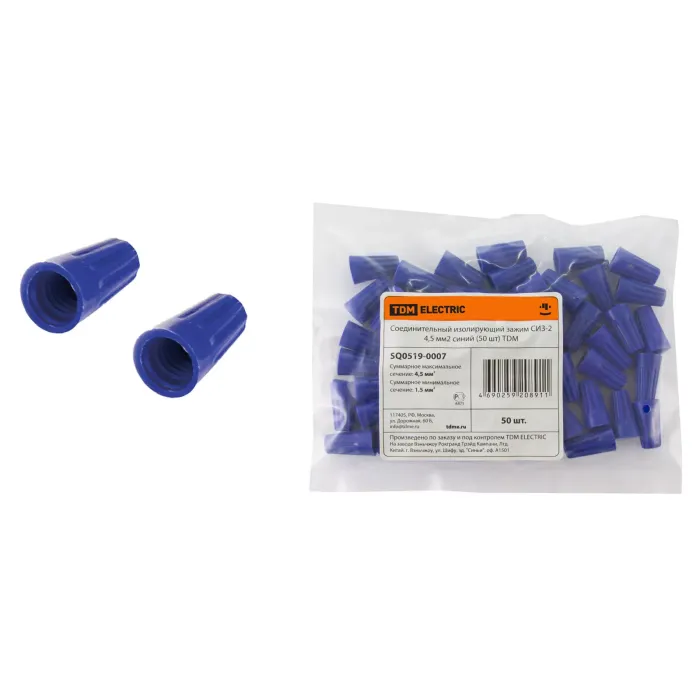 Соединительный изолирующий зажим СИЗ-2 4,5 мм2 синий (50 шт) TDM