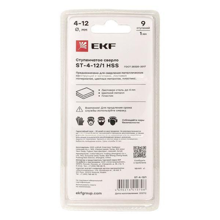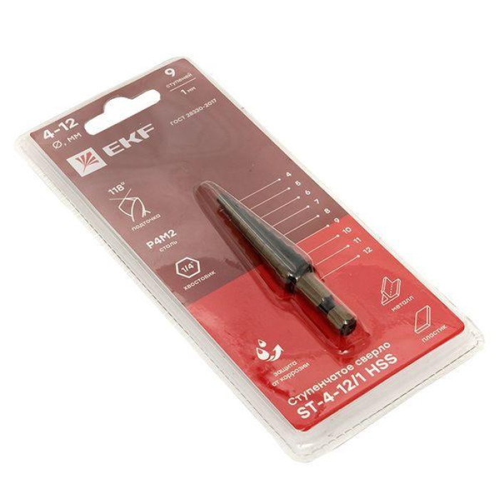 Сверло ступенчатое ST-4-12/1 HSS 9 ступ. EKF ST-4-12/1