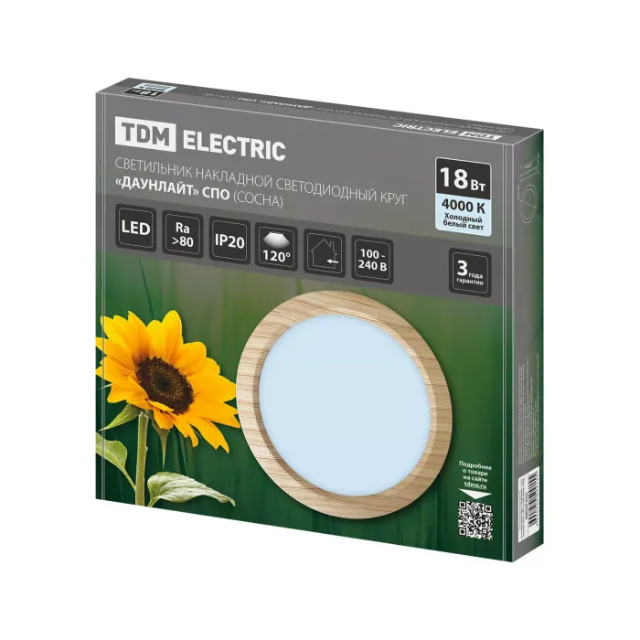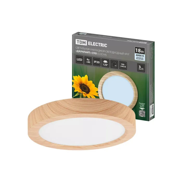 Светильник накладной светодиодный круг "Даунлайт" СПО (сосна) 18 Вт 225*32 мм 4000К TDM