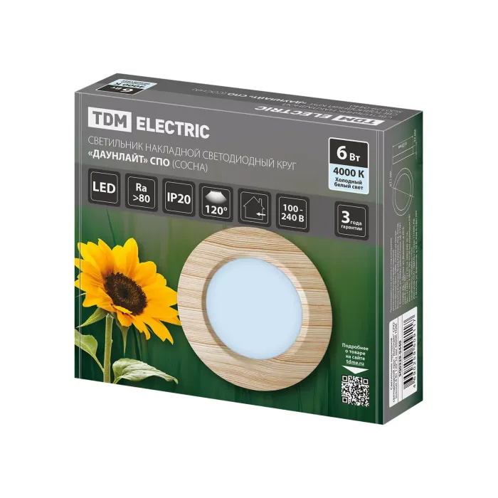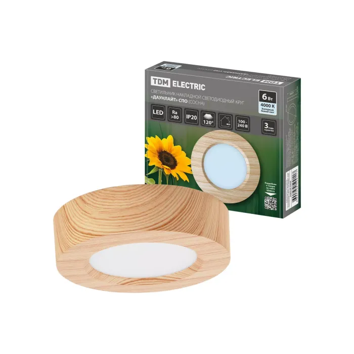 Светильник накладной светодиодный круг "Даунлайт" СПО (сосна) 6 Вт 120*32 мм 4000К TDM