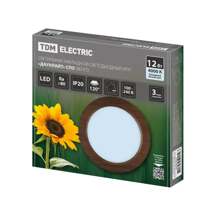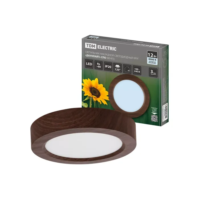Светильник накладной светодиодный круг "Даунлайт" СПО (венге) 12 Вт 170*32 мм 4000К TDM