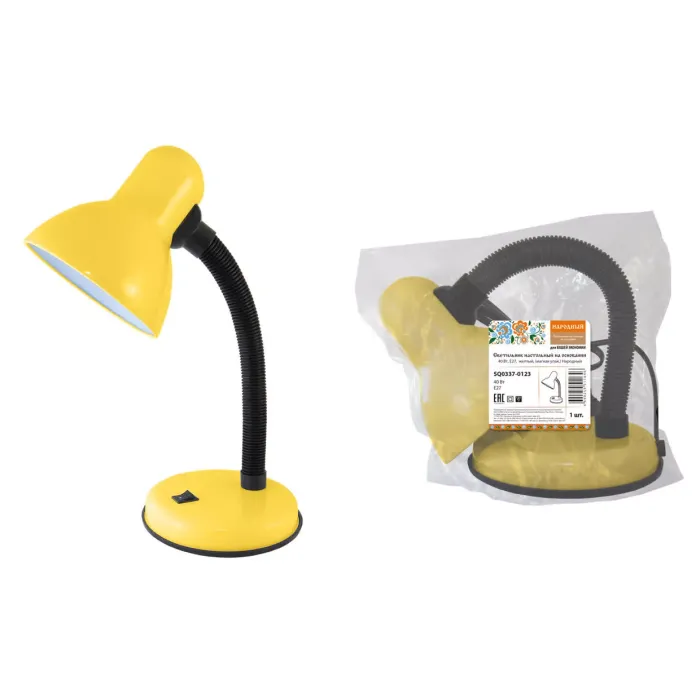 Светильник настольный на основании 40Вт, E27, желтый, (мягкая упак.) Народный