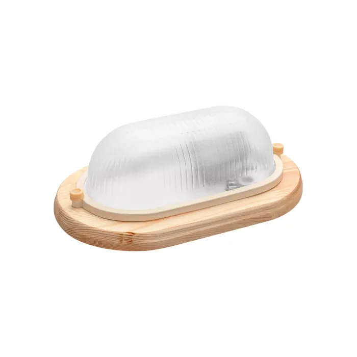 Назначение: Предназначены для общего освещения.Преимущества: Матовый рассеиватель создает мягкий рассеянный свет.Степень защиты IP54 позволяет использовать светильники в помещениях с повышенным содержанием пыли и влаги.Конструкция: Декоративное основание деревянное (светлое дерево – сосна, темное – венге).Светильники снабжены уплотнителем и вводным сальником.Патрон – Е27.Материалы: Корпус:Патроны:Порошковая краскаРассеиватель:КерамикаИнструментальная штамповая стальЗакаленное стеклоУпаковка: Коробка из картона.