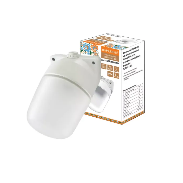 Светильник НПБ400-1П настенный, наклонный белый, IP54, 60 Вт, основание-поликарбонат, Народный
