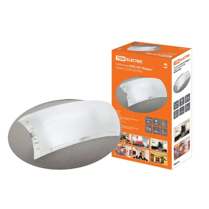 Назначение: Предназначены для общего освещения.Преимущества: Стильный и лаконичный дизайн позволяет устанавливать светильник в любых интерьерах.По классу защиты от поражения электрическим током соответствует – II. Заземление корпуса не требуется.Конструкция: Тип источника света – КЛЛ.Материалы: ПластикКерамикаПатрон:Упаковка: ПакетКоробка из картона.