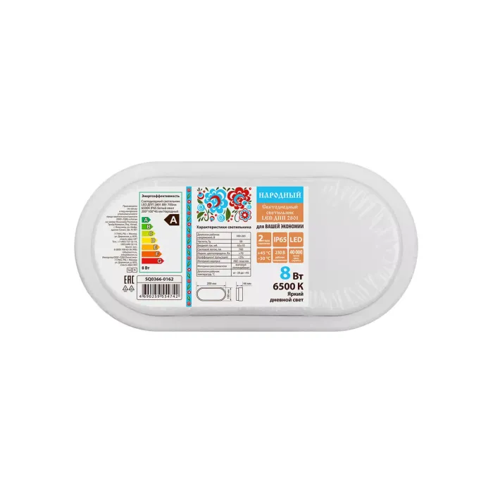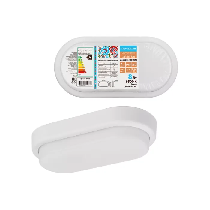 Светодиодный светильник LED ДПП 2801 8Вт 700лм 6500К IP65 белый овал 200*100*46 мм Народный