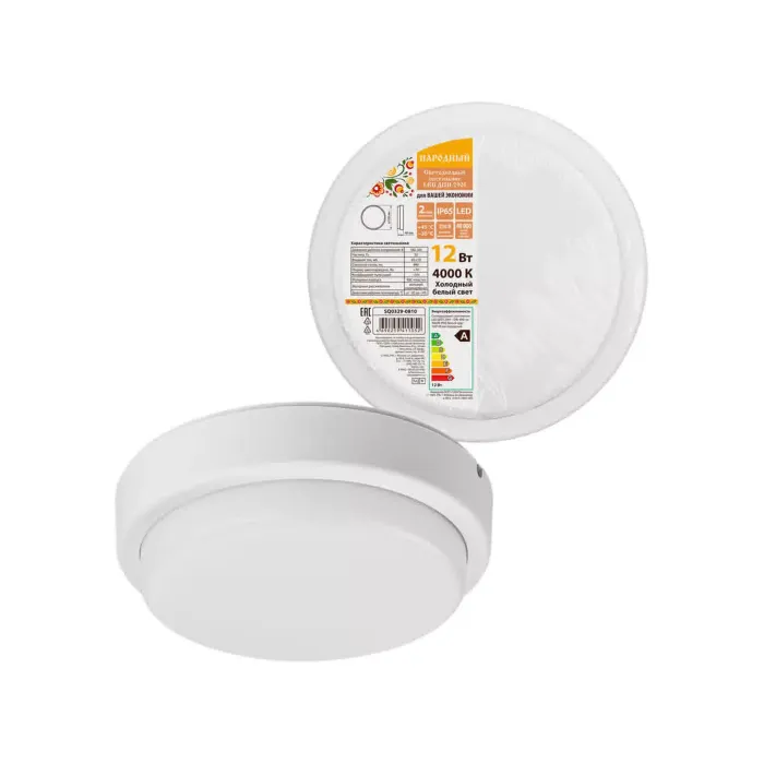 Светодиодный светильник LED ДПП 2901 12Вт 990 лм 4000К IP65 белый круг 160*48 мм Народный