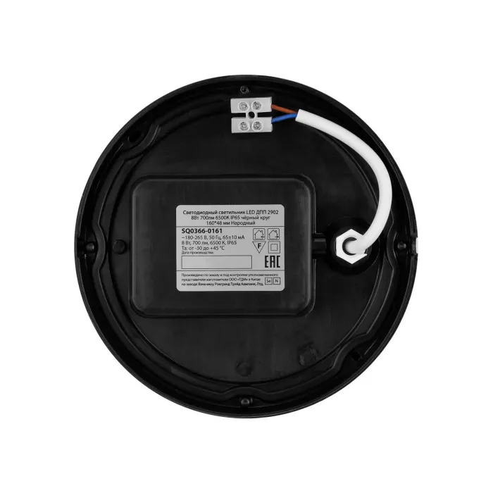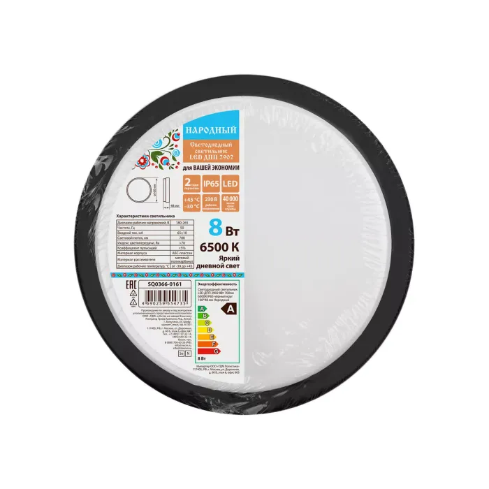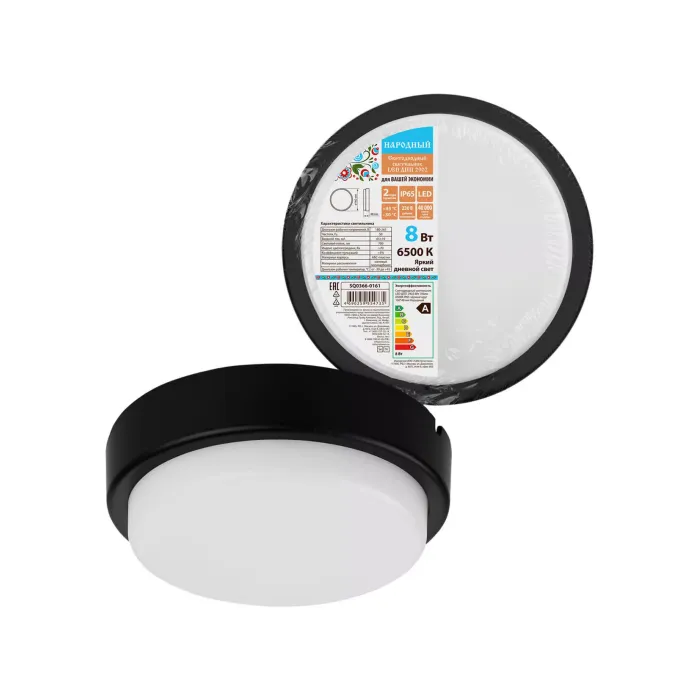 Светодиодный светильник LED ДПП 2902 8Вт 700лм 6500К IP65 чёрный круг 160*48 мм Народный