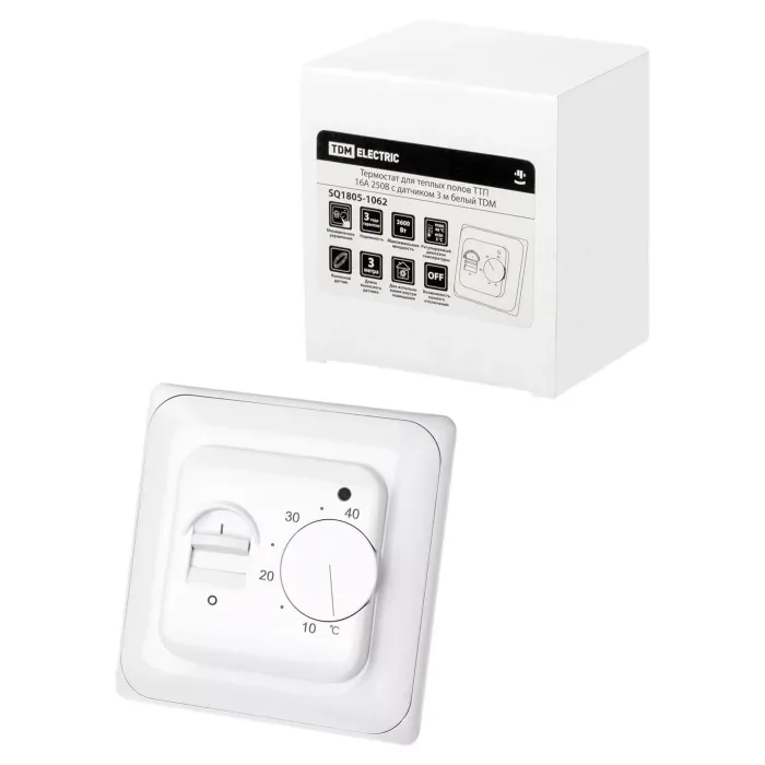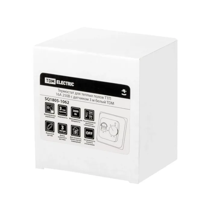 Термостат для теплых полов ТТП 16А 250В с датчиком 3 м белый TDM