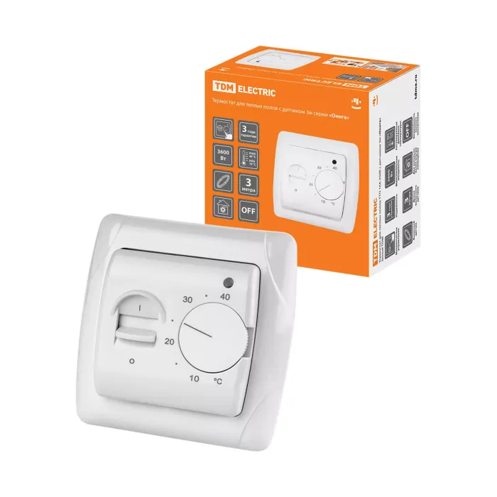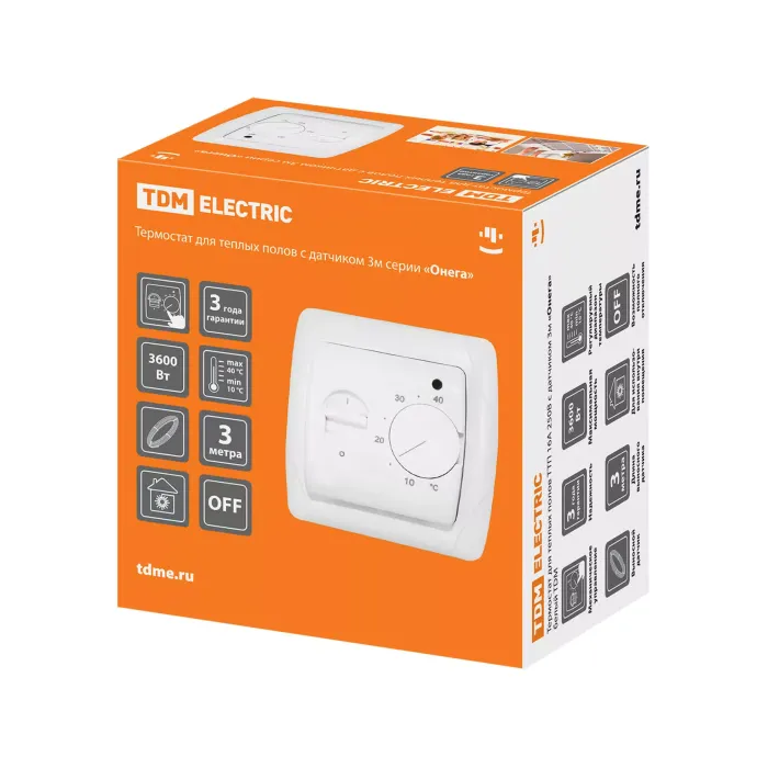 Термостат для теплых полов ТТП 16А 250В с датчиком 3м "Онега" белый TDM