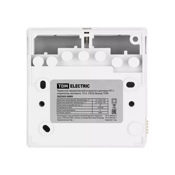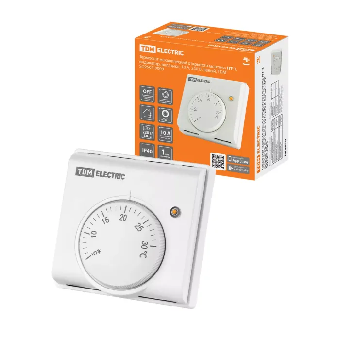 Применение: Применяется для поддержания заданной температуры в помещенииРекомендуется применение с ИК обогревателями ТМ TDM ELECTRICПреимущества: Широкий диапазон регулировки температуры (от +5 до +30 °С)Возможность полного отключения питанияСветовой индикатор работы.Максимальный коммутируемый ток 10 А