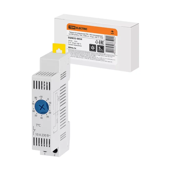 Термостат модульный ТМ-1 NO (охлаждение) на DIN-рейку, 10 А, 230 В, от -10 до +80 °C TDM