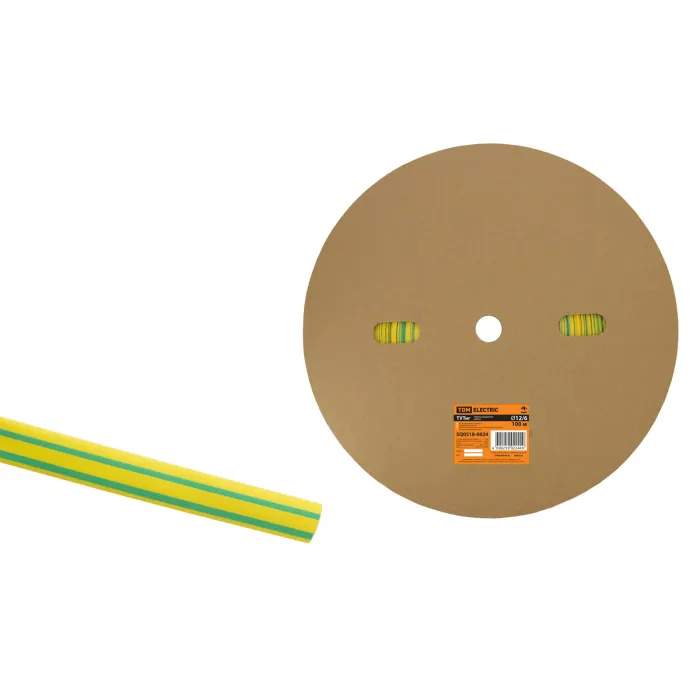 Термоусаживаемая трубка ТУТнг 12/6 желто-зеленая (100 м/ролл) TDM