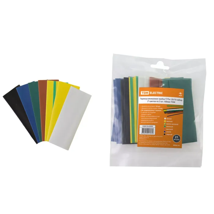 Термоусаживаемая трубка ТУТнг 20/10 набор (7 цветов по 3 шт. 100мм) TDM