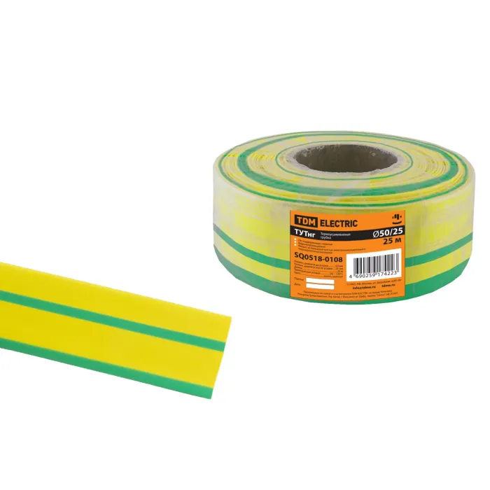Термоусаживаемая трубка ТУТнг 50/25 желто-зеленая (25 м/ролл) TDM