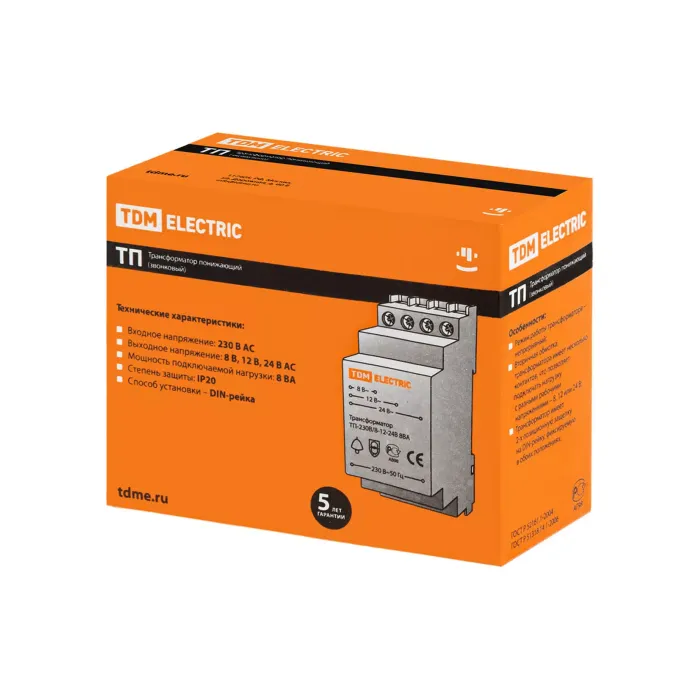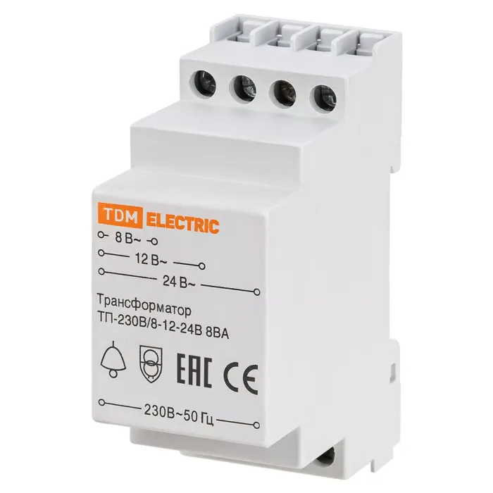 Трансформатор понижающий ТП-230В/8-12-24В 8ВА DIN-рейка TDM