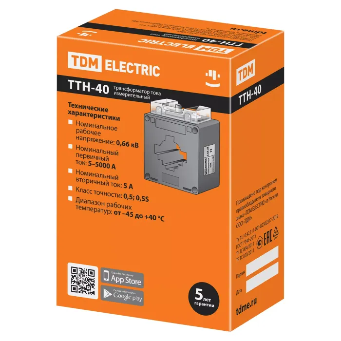 Преимущества: Ассортимент трансформаторов ТТН класса точности 0,5 очень широк и охватывает ряд востребованных исполнений, таких как ТТН-Ш: 300-1000А; ТТН60; ТТН100 и ТТН125, отсутствующих у ряда российских производителей. Возможность пломбировки крышки вторичной обмотки, что позволяет исключить несанкционированное подключение к ней. Все трансформаторы внесены в государственный реестр средств измерений и имеют свидетельство типа CN.C.34.158.A №74216. Межповерочный интервал 4 года Возможность подключения как медных, так и алюминиевых проводников к трансформаторам тока ТТН-Ш со встроенной шиной. Все трансформаторы поверенные и имеют соответствующие штампы на корпусе и в паспорте. Клеммные зажимы вторичной обмотки закрыты прозрачной крышкой, что обеспечивает электробезопасность при эксплуатации.