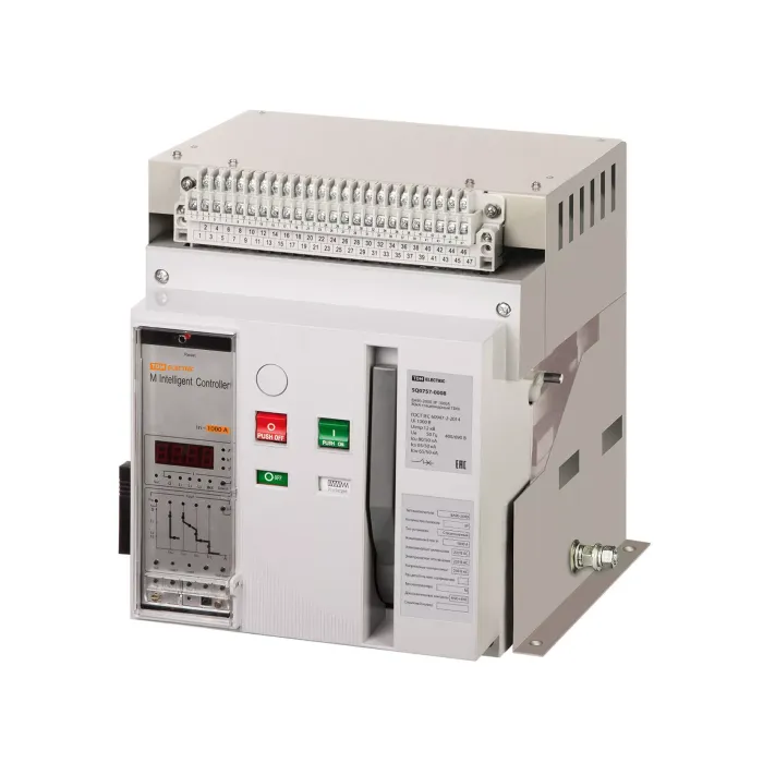 Назначение: Мониторинг параметров токовой нагрузки пофазно.Отключение тока при перегрузке и коротком замыкании с выдержкой времени (селективные выключатели).Оперативное включение и отключение сетей при управлении непосредственно операторомДля проведения тока в нормальном режимеКонструкция: Устройство блокировки кнопок ВКЛ/ОТКЛ навесным замком.Взаимная механическая блокировка (тросовая) двух или трех выключателей.Вид привода: электромеханический, ручной.Возможность горизонтального присоединения.Выключатель фиксации положения автоматического выключателя в корзине (для выкатного исполнения).Стационарное и выкатное исполнение.Вид управления выключателями: дистанционное управление, ручное управление.Механический счетчик циклов.Материалы: Стойкость к износу благодаря наборным многопластинчатым медным контактам.
