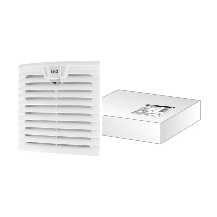 Назначение: Для организации активного воздухообмена во внутреннем объеме шкафа. Позволяют существенно увеличить отвод тепла из корпуса, и, тем самым, способствуют улучшению стабильности работы и увеличению ресурса оборудования.Применение: Шкафы, корпуса, боксы.Преимущества: Использование высококачественных подшипников качения в кулерах с большим ресурсом работы (50000 часов).Легкость монтажа и простота обслуживанияКонструкция: Конструктивно устройство представляет собой осевой вентилятор с установленной на него решеткой со сменным фильтром.Материалы: В двигателях используются высококачественные подшипники качения, обладающие большим ресурсом работы (50000 часов).Фильтры изготовлены из синтетического моющегося материала, соответствующего классу G3 согласно ГОСТ Р 51251-99.Решетки выполнены из не распространяющего горение AБСпластика. Вентиляционная решетка с фильтром для вентилятора ВФУ SQ0832-0112 (204 мм) TDM