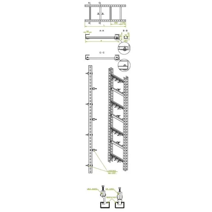 Вертикальный кабельрост DDMC200H55/3 403320 DKC