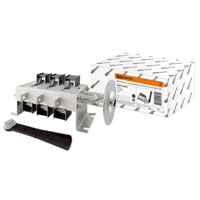 Конструкция: Дугогасительные камеры, большой раствор контактов, двойной разрыв цепи обеспечивают эффективное гашение электрической дуги. Съемная рукоятка позволяет повысить безопасность эксплуатации электроустановки (фото) Дополнительная цветовая индикация положения «Включено» сигнализирует о необходимых мерах предосторожности (фото) Контактная система ножевого типа с двойным видимым разрывом цепи обеспечивает безопасность обслуживания