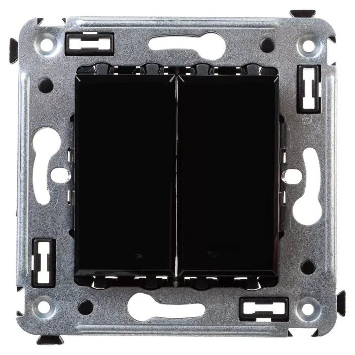 Двухклавишный выключатель производства ДКС используется для того, чтобы из одной точки управлять двумя контурами освещения (в одном или разных электроприборах). Выключатель применяется для скрытого монтажа в стену. Номинальное напряжение – 230 В, номинальный ток – 16 А.