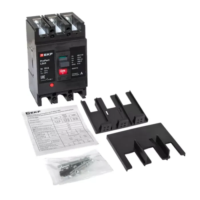 Выключатель LS ProPact выполнен в виде моноблока и состоит из основания и крышки с фальшпанелью, в которой имеется окно для рукоятки управления и толкатель кнопки «Тест» - проверки механизма отключения выключателя. Основание выполнено из термостойкой пластмассы, не поддерживающей горение и являющейся несущей конструкцией для присоединительных зажимов, неподвижных и подвижных контактов с системой дугогашения, механизма управления, блока защиты от сверхтоков. Крышка закрывает все подвижные элементы механизма управления и внутренние токоведущие части. Данная серия не подразумевает возможность установки аксессуаров