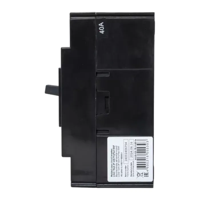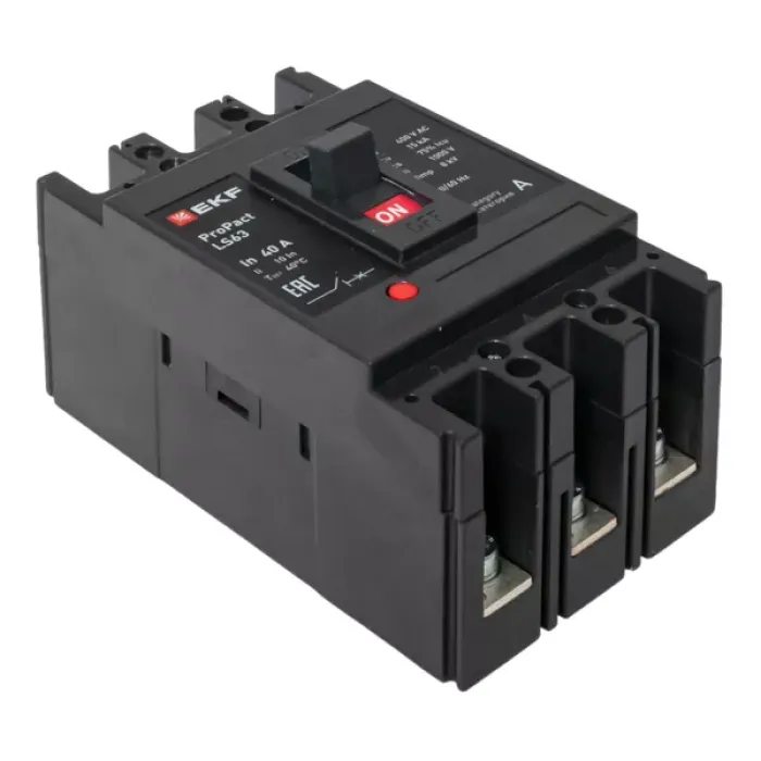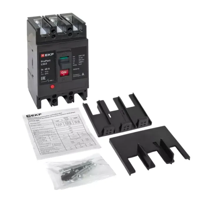Выключатель LS ProPact выполнен в виде моноблока и состоит из основания и крышки с фальшпанелью, в которой имеется окно для рукоятки управления и толкатель кнопки «Тест» - проверки механизма отключения выключателя. Основание выполнено из термостойкой пластмассы, не поддерживающей горение и являющейся несущей конструкцией для присоединительных зажимов, неподвижных и подвижных контактов с системой дугогашения, механизма управления, блока защиты от сверхтоков. Крышка закрывает все подвижные элементы механизма управления и внутренние токоведущие части. Данная серия не подразумевает возможность установки аксессуаров