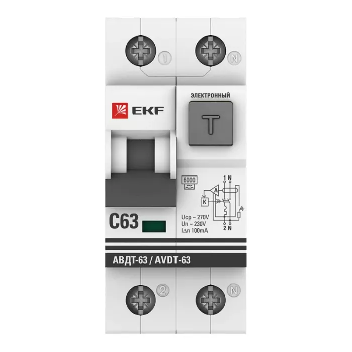 Автоматический выключатель дифференциального тока АВДТ-63 EKF PROxima представляет аппарат, сочетающий функции автоматического выключателя с электромеханическим или электронным УЗО. При обнаружении автоматическим выключателем в защищаемом участке сети тока утечки (повреждения) на землю или сверхтока (тока перегрузки иликороткого замыкания) происходит срабатывание устройства, приводящее к отключению защищаемой сети. Возможна коммутация алюминиевым и медным проводником.Автоматический выключатель дифференциального тока малогабаритный АВДТ-63М EKF PROxima представляет аппарат, сочетающий функции автоматического выключателя с электронным УЗО типа АС в компактном корпусе шириной один модуль. При обнаружении автоматическим выключателем на защищаемом участке сети тока утечки (повреждения) на землю или сверхтока (тока перегрузки или короткого замыкания) происходит срабатывание устройства, приводящее к отключению защищаемой сети. Особое отличие дифференциальных автоматических выключателей EKF с электронным УЗО – в наличии блока защиты от перенапряжения. Возможна коммутация алюминиевым и медным проводом.