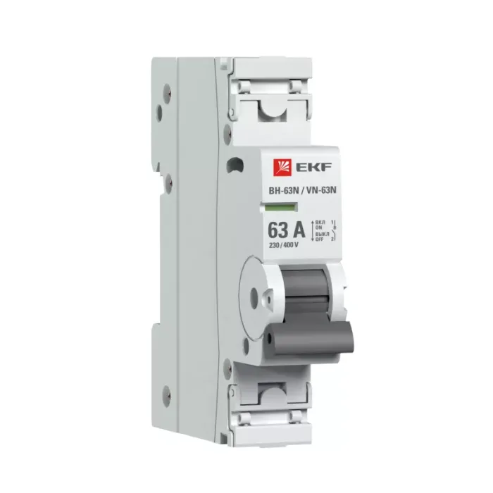 Выключатели нагрузки ВН-63N EKF PROxima являются обновлённой платформой успешно зарекомендовавших себя на рынке линейки выключателей нагрузки ВН-63 EKF PROxima. Выключатели нагрузки являются механическими коммутационными аппаратами и применяются для оперативных включений и отключений в электрических цепях переменного тока. Выключатели предназначены для коммутации активных и индуктивных нагрузок, включая двигатели, уже защищенные другими коммутационными аппаратами. Особенностью данной серии является усовершенствованная конструкция. В выключателях имеются пластиковые крышки, закрывающие доступ к винтовым зажимам и служащие для опломбирования выключателей, что исключает несанкционированный доступ к проводникам. Корпус выключателей усилен дополнительными заклепками для обеспечения его максимальной жесткости. Выключатели оборудованы удобной рукояткой управления, обеспечивающей надежное оперирование аппаратами. На лицевой панели выключателей нагрузки имеется цветовой индикатор реального состояния контактов. Конструкция двухпозиционного зажима обеспечивает удобный монтаж выключателя на DIN-рейку.
