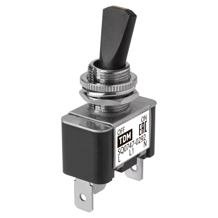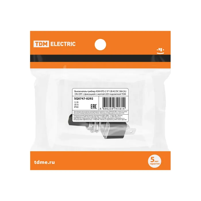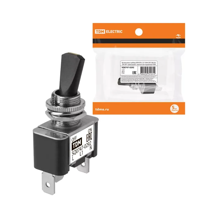 Выключатель-тумблер ASW-07D-2 1P 12В AC/DC 30А (3c) ON-OFF с фиксацией с желтой LED подсветкой TDM