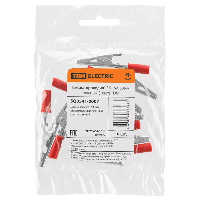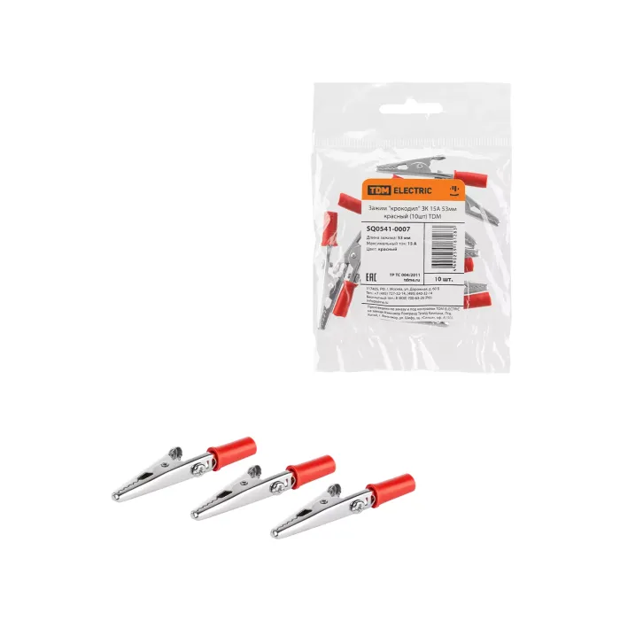 Зажим "крокодил" ЗК 15А 53мм красный (10шт) TDM